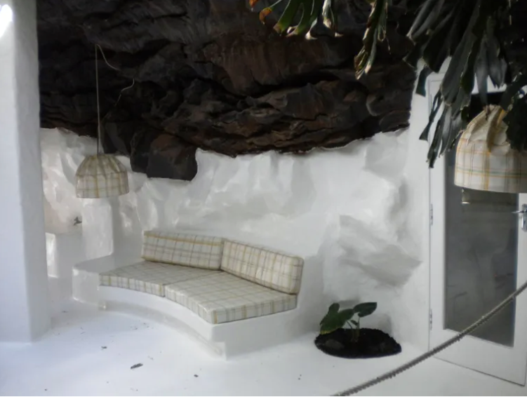 Your journey through the foundation begins at the art gallery on the upper level. From there, it spirals down into the depths of Manrique’s innovative genius—the volcanic rooms. These spaces, crafted within the hollows of natural lava bubbles, showcase Manrique’s skill in harmonizing living spaces with the raw forms of nature. A sequence of five bubbles unveils living quarters, ingeniously linked by corridors and adorned minimally with essentials—a sofa here, a table there, interspersed with greenery and the soft sounds of a fountain. Here, functionality marries natural beauty, all while honoring the untouched character of the volcanic creations.